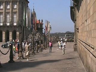 Left, a final photo of the building taken from under Santiago cathedral and looking across the piazza. The Rajoy palace is just in view to the right of the frame. What appears to be a statue in the foreground is an impersonator of the apostle saint James.